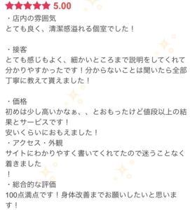 お客様から口コミをいただきました✨ お値段以上と評価いただき嬉しいです😆
