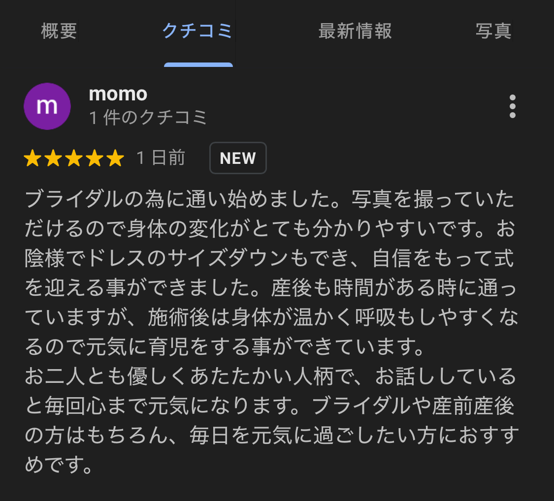 ブライダルから出産後まで 嬉しい口コミをいただきました!