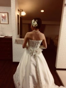 実は、ブライダルコースのお客様のウエディングドレス選びもしています。
