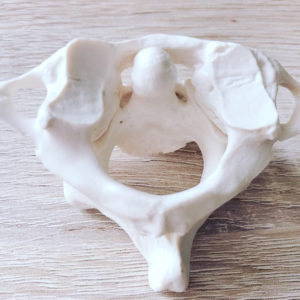上が頚椎一番で他の頚椎の形とは違いリング状になっていて横には「横突起」という突起が出ているのがわかると思います。