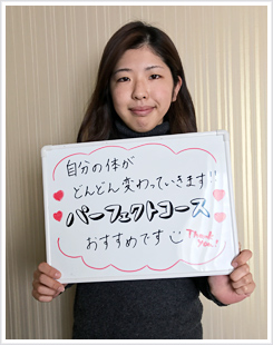 そうですね。3か月くらいからですかね。夏ぐらいから急に体重が落ちて来ました。2キロくらい落ちたので、周りの人からも痩せたねとか姿勢が良くなったと言われるようになりました。体の良い状態を維持しながら綺麗に体のラインが出てきて本当に嬉しいです。